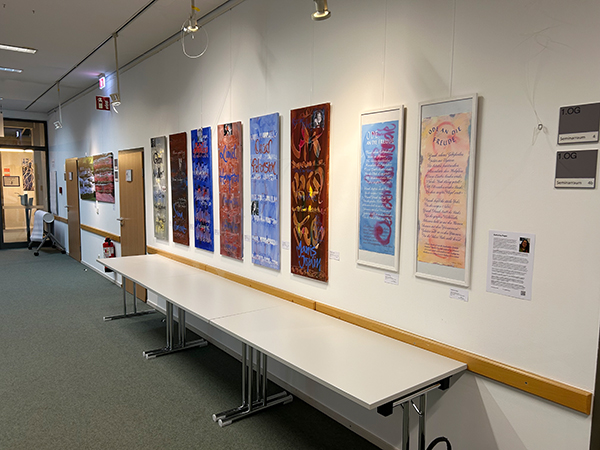 Kalligrafien werden im Anschluss an die ca. 20minütigen Performances