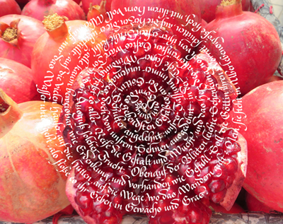 Kalligrafische Originalarbeiten auf Papier und Leinwand hat sie mit Fotografien,