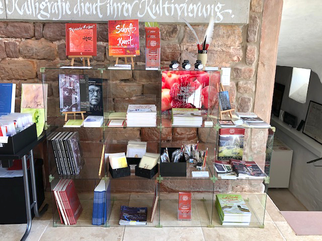 Im Gewölbekeller unter dem Galerie- und Workshopraum befindet sich das Museum für Kalligrafie und Handschrift. Hier sind Schreibwerkzeuge aller Art wie Federn, Pinsel und experimentelle Schreibinstrumente sowie Tinten, Tuschen und weitere Schreibflüssigkeiten und Beschreibstoffe zu sehen. Ein historischer Überblick über die Entwicklung unserer Schrift darf natürlich nicht fehlen. Schautafeln erklären die Herkunft unserer lateinischen Schrift und erklären den Unterschied zwischen Kalligrafie und Handschrift. An speziell installierten Schienen ist eine Dauerausstellung von Jean Larcher mit Original-Kalligrafien zu sehen, die er für sein Buch Traits de Caractère" geschrieben hat. Auch das Jean-Larcher-Archiv hat hier seinen Platz. Eine sehr lebendige und farbige Tafel zeigt Original-Briefumschläge von Jean Larcher an Katharina Pieper – alle per Post verschickt! |