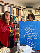 29.04.22 Vor einigen Tagen ging ein Kurs im Kloster Zevenkerken bei Belgien zu Ende, den Katharina Pieper für die "Anglaisevrienden Zwijndrecht" gegeben hat. Die Teilnehmer wandelten auf den Spuren von Jean Larcher, der dort ebenfalls viele Kurse leitete, und widmeten sich der Schrift "Napoleon" aus seinem Buch "Traits de Caractère", S. 197. – Der Katalog zur Ausstellung von Jean Larcher, die derzeit in der Galerie läuft, ist fertig! Auf 56 Seiten werden 92 kreative Briefumschläge gezeigt. Er kostet 15 € und ist bei uns erhältlich. Am kommenden Sonntag, den 1. Mai, ist die Galerie von 14 bis 17 Uhr geöffnet. – Prof. Diego Navarro Bonilla von der Universität in Madrid stattete der Stiftung Schriftkultur gestern einen Besuch ab. Er ist nicht nur Paläograf (Handschriftenforscher), sondern auch Kalligraf – eine ungewöhnliche Kombination. Es gab einen sehr interessanten und freundschaftlichen Austausch. |