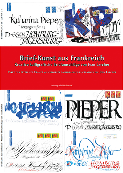 kreative kalligrafische Briefumschläge von Jean Larcher" statt. Es entstand ein Katalog, der nach wie vor